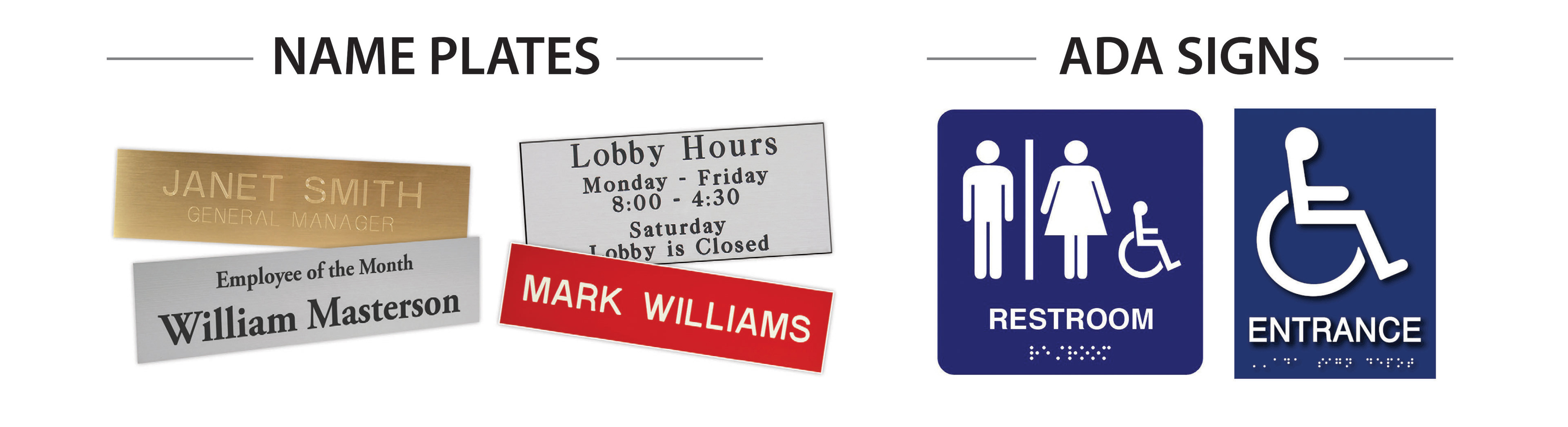 Name Badges / Name Plates, ADA Signs & Stamps